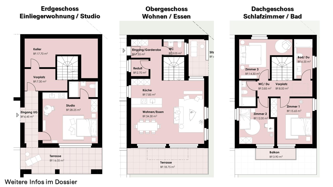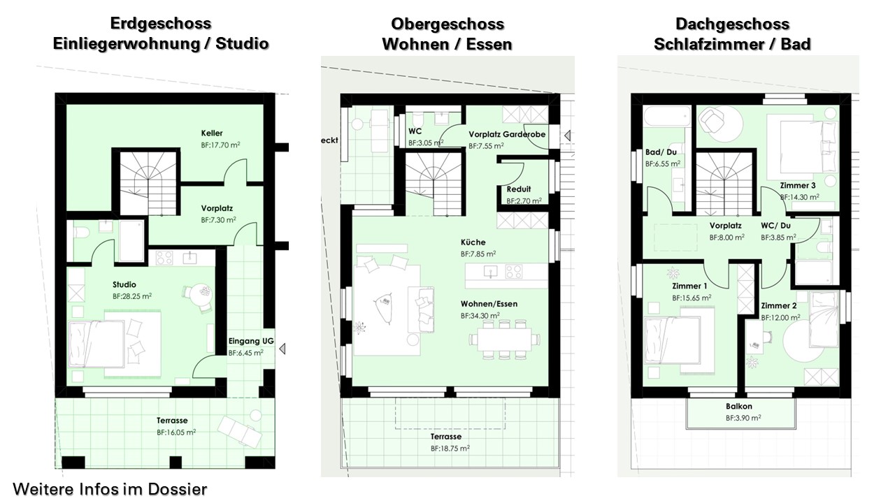 | Haus C | 143.65 m2 | 25.25 m2 | 34.80 m2 | CHF 1'490'000 | verfügbar | ||