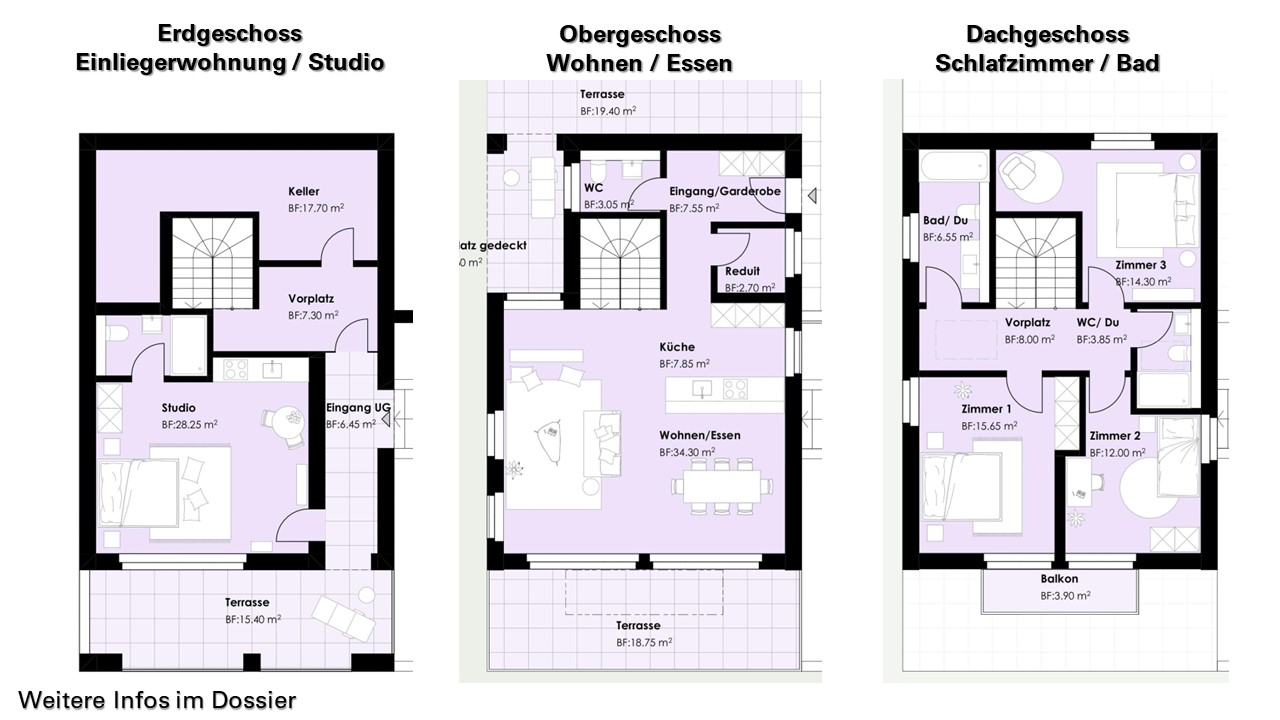 | Haus B | 143.65 m2 | 41.10 m2 | 34.80 m2 | CHF 1'530'000 | verfügbar | ||